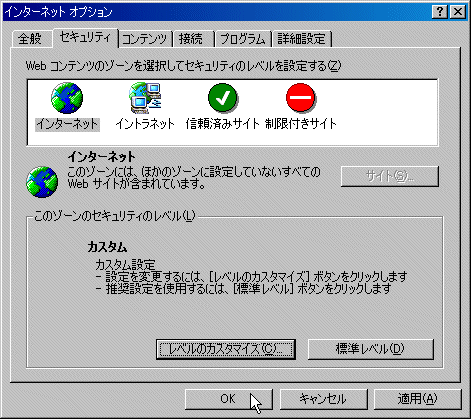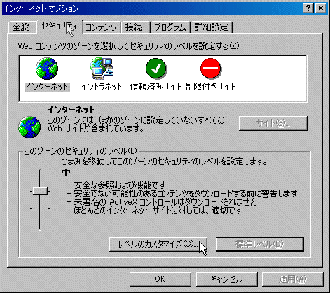 [セキュリティ] をクリックし、「レベルのカスタマイズ」
