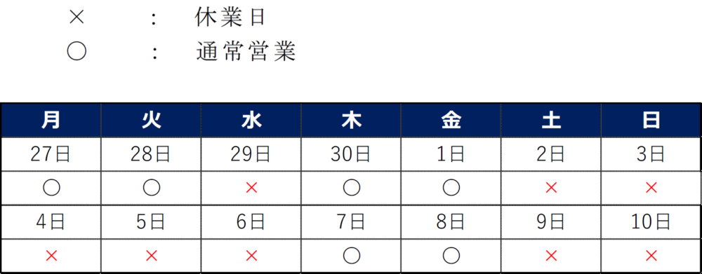 ゴールデンウイーク休暇のお知らせ