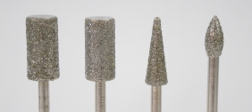 ●JDS-01 粗削り用ダイヤモンドビット 石の削り出し等に 円柱型(左) 6.4x13x2.34Bx45L grid #40 円柱型(左中)6.4x13x2.34Bx45L grid #60 円錐型 (右中)4.8x14x2.34Bx45L grid #60 フットボール型 (右) 2.8x10x2.34Bx45L grid #60 |